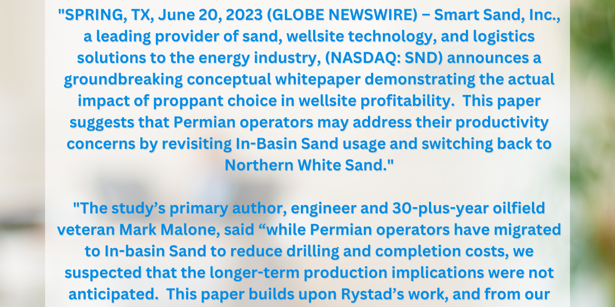 Proppant Choice at the Oil Well Drives Efficient Operations: In-Basin Sand is Cheaper Upfront, but Quickly Erodes Cash Flow and Profitability